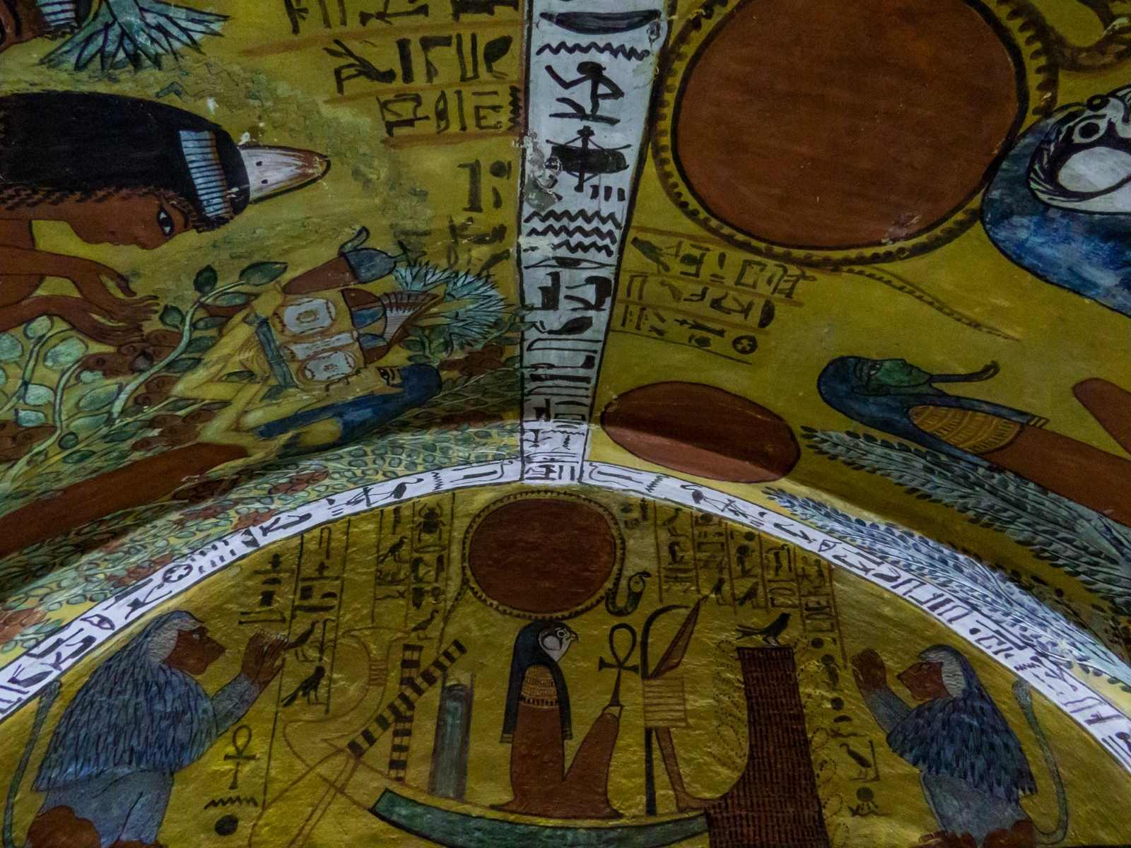 Midday: The Lives of the Artists Next, we move to Deir el-Medina, the ancient village of the workmen. This is a highlight of the Valley of the Queens, Deir el-Medina & Medinet Habu itinerary because it shows you real life, not just royal death. You will walk through the stone foundations of the workers' actual houses, seeing where they slept, cooked, and raised families. Then, you will descend into their private tombs, such as the tomb of Sennedjem. These are small, intimate spaces covered floor-to-ceiling in yellow and gold paintings depicting their hope for a happy afterlife, farming in the Field of Reeds.