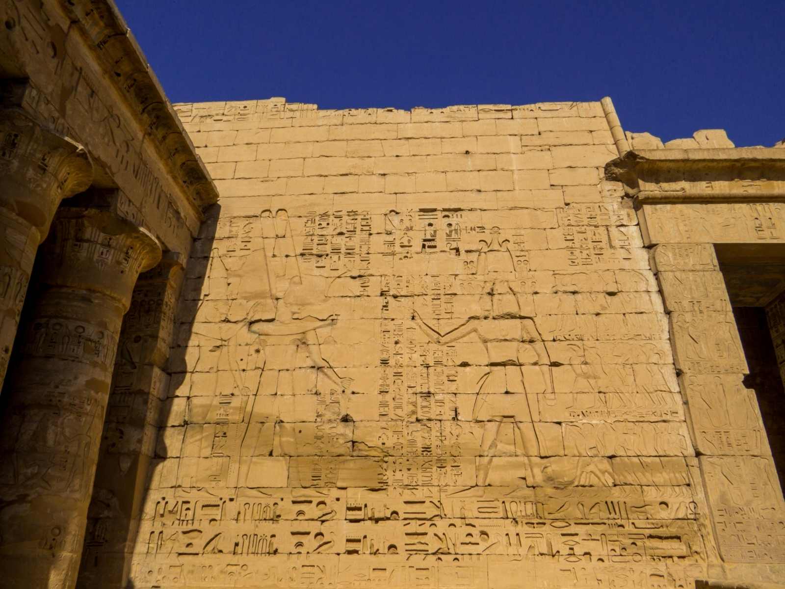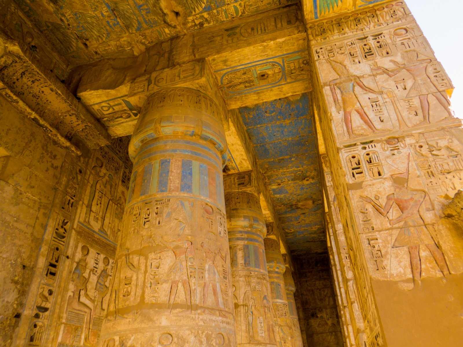 Afternoon: The Fortress Temple After a relaxing lunch break at a countryside restaurant, we finish at Medinet Habu. This temple is a beast—a massive fortress with high walls and deep, heavy carvings that act as shadows in the afternoon sun. You will wander through courtyards where the paint is still visible on the ceilings and columns, examining the dramatic reliefs of Ramses III defeating the "Sea Peoples." It is one of the most atmospheric and complete temples you will see in Luxor.